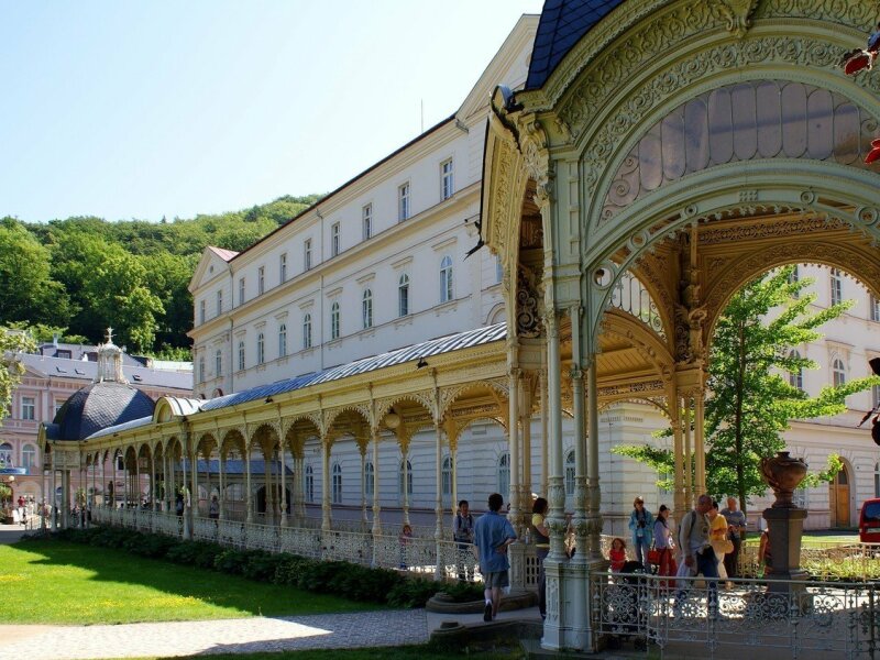 In de 5 schitterende colonnades vindt u de 12 bronnen van Karlovy Vary. Het thermaal water heeft een temperatuur van 40-73 ˚C en bevat geneeskrachtig zout en zwavel. Met name heilzaam bij aandoeningen aan de spijsverteringsorganen (vooral maag, lever en gal), maar ook om het immuunsysteem te stimuleren en als preventie van welvaartsziekten. Het drinken van het bronwater stimuleert de aanmaak van insuline en verlaagt het cholesterol in het bloed.